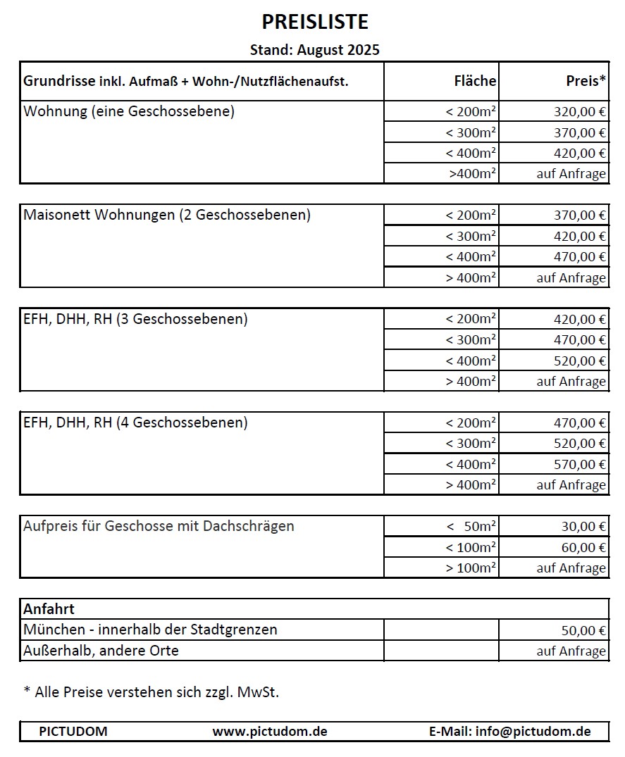 - Erstellung der Wohn-/Nutzflächenaufstellung nach Wohnflächenverordnung WoFIV 2004